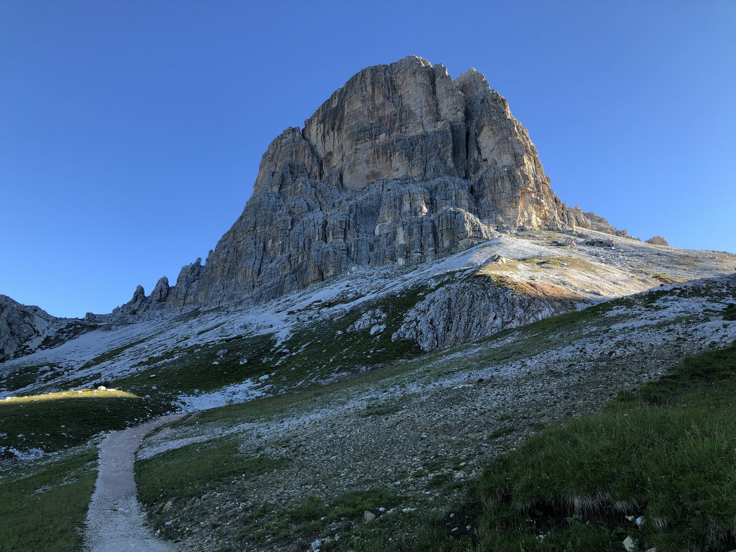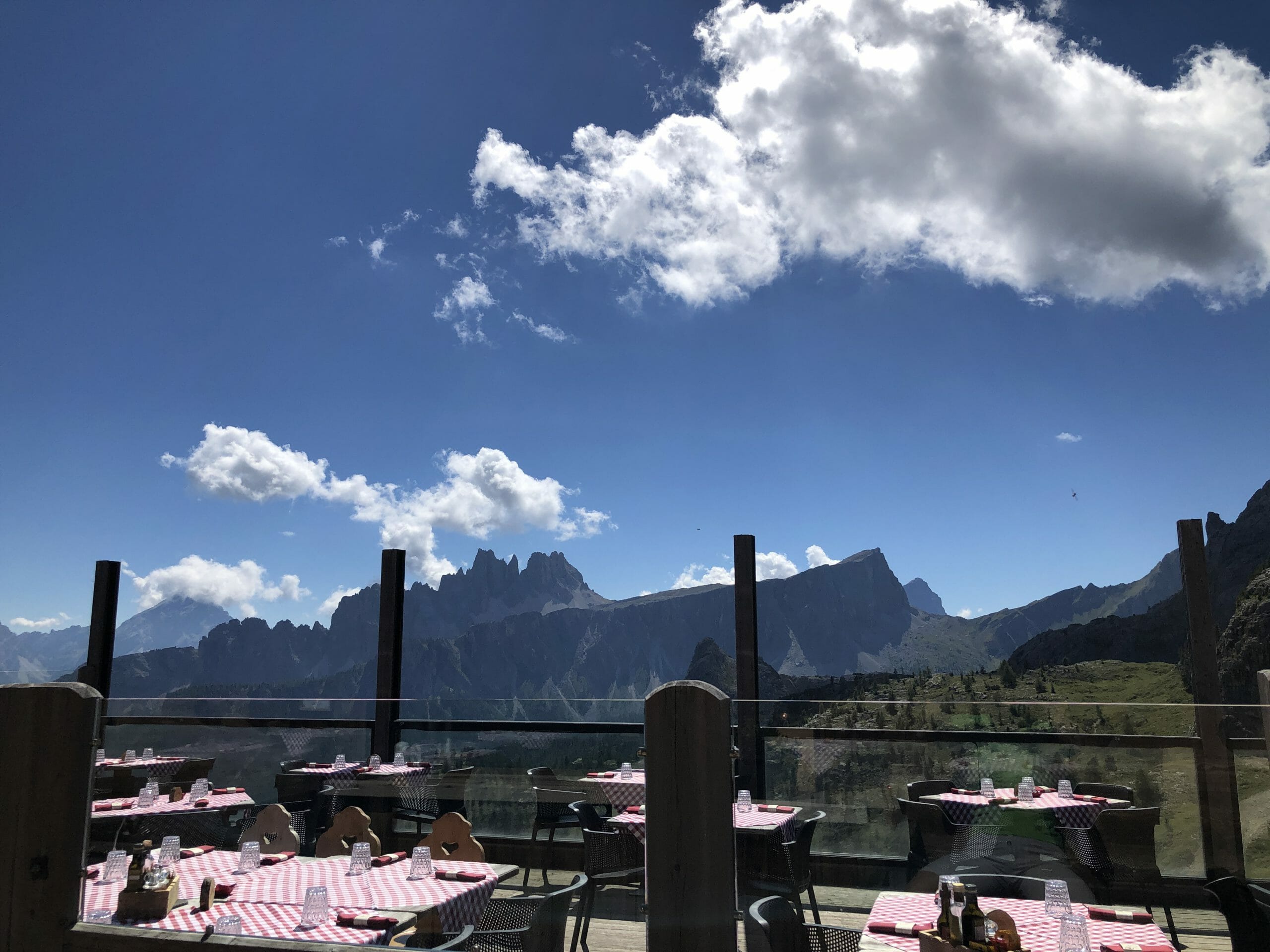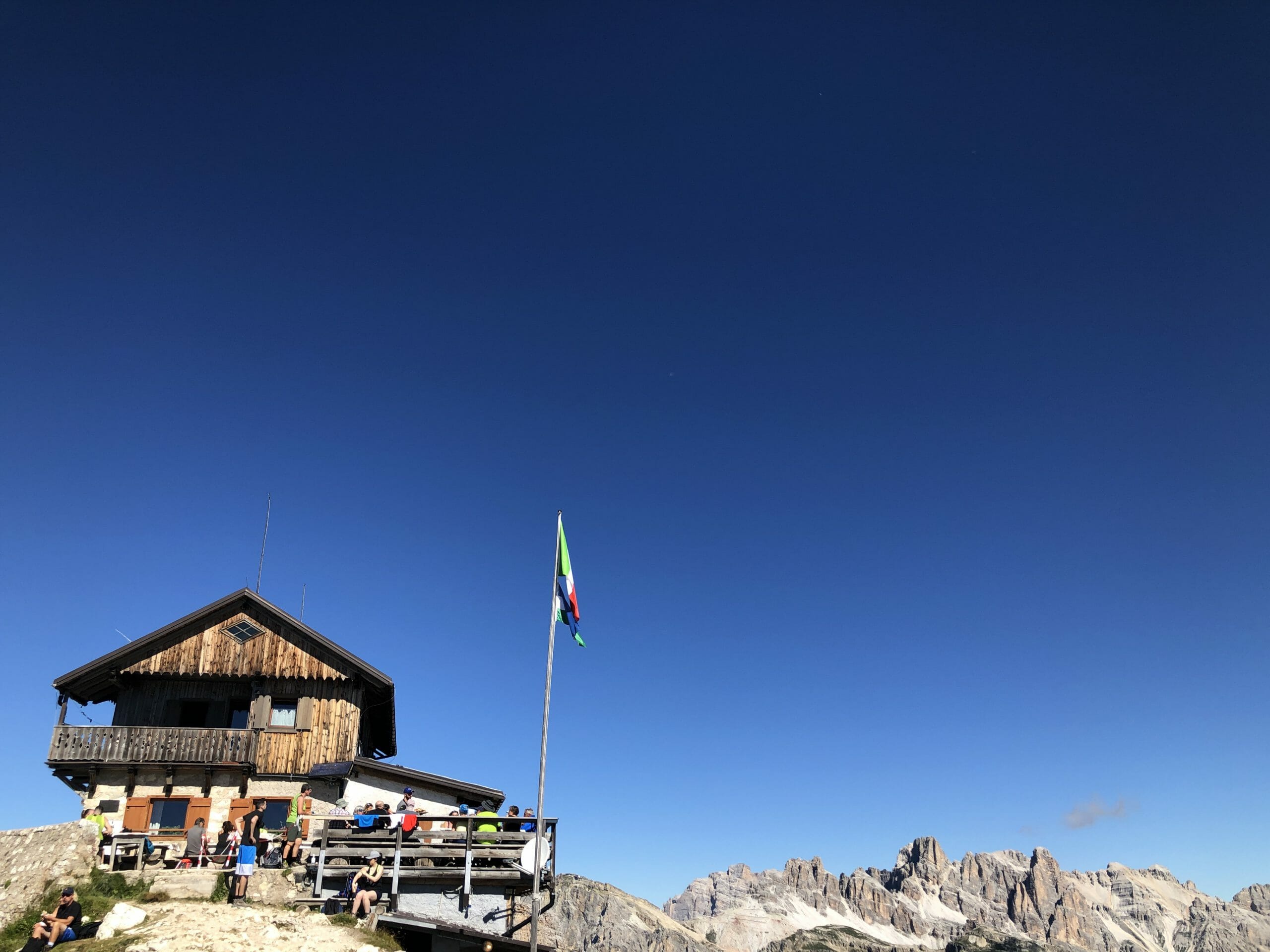 Siamo fortunati. In cielo non c’è una nuvola e così, tra una risata e l’altra con i gestori di questo rifugio che è il più vecchio di tutte le Dolomiti, ci godiamo appieno questo spettacolo che la natura ci offre. Da quassù si può abbracciare in un solo colpo tutta la meraviglia delle Dolomiti.