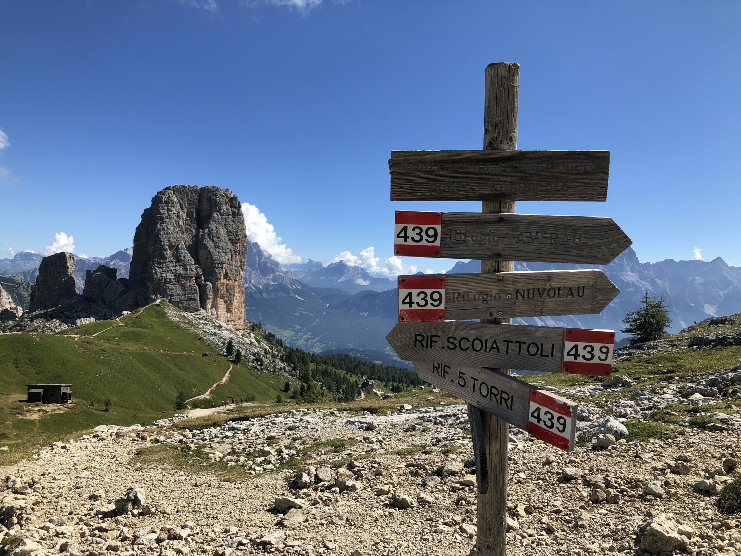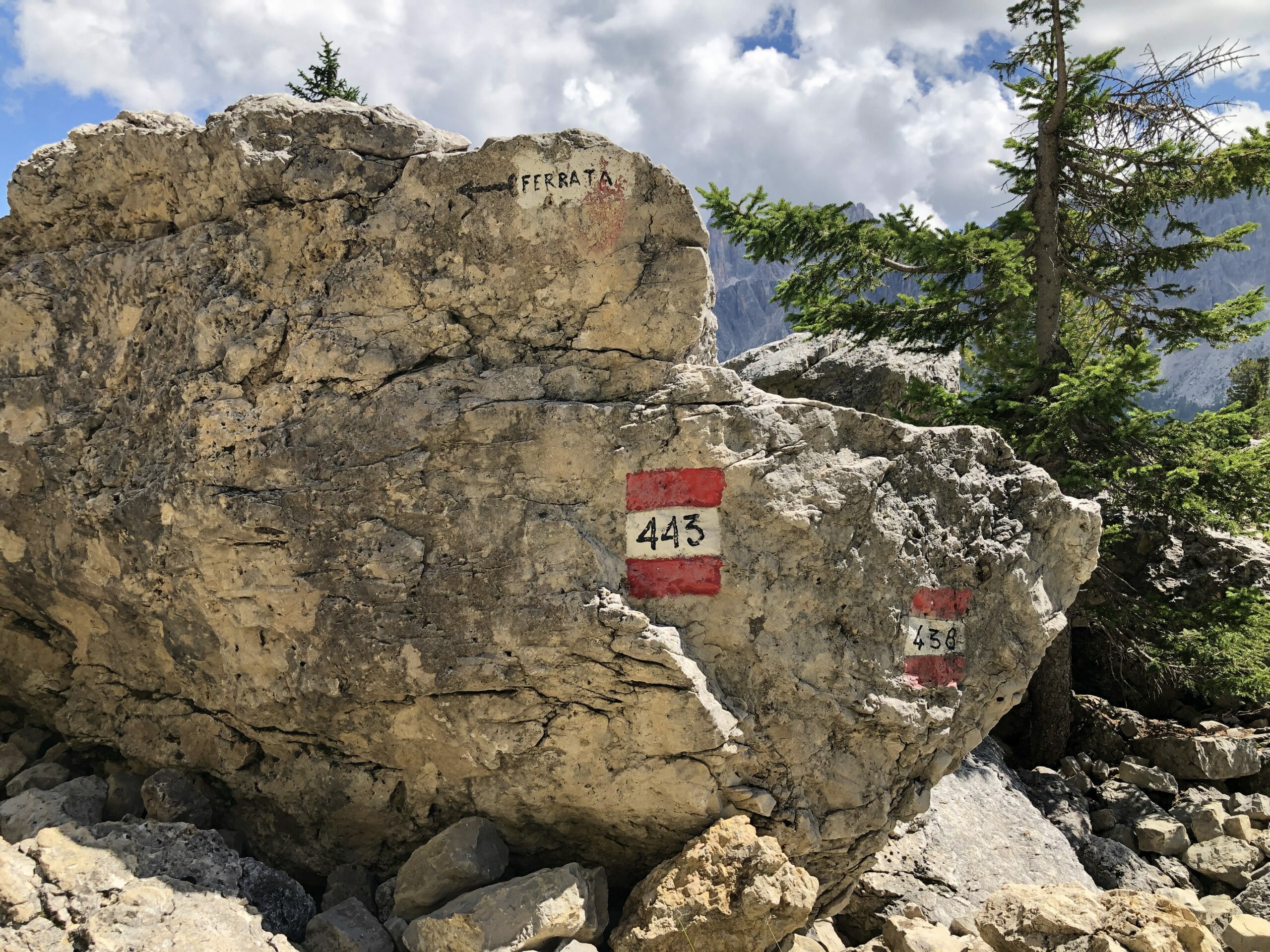 Tempo, anche qui, del timbro di rito e ci rimettiamo in marcia lungo il sentiero 443 che tra gradoni, rocce e boschi riporta al Passo Giau. Il sentiero 443 gira attorno al Monte Nuvolau e al contempo permette di ammirare Cinque Torri, Lastori del Formin, Tofana e Cima Ambrizzola.